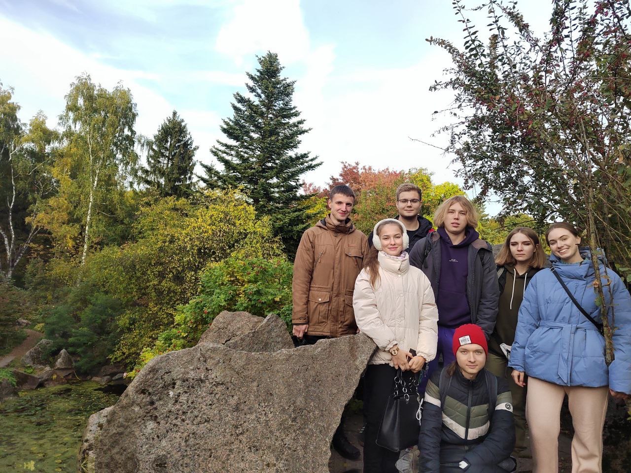 В ходе занятия учебная группа также посетила Альпинарий с коллекциями растений различных природных зон. Обширность территории обитания растений, собранных в Ботаническом саду, поражает воображение. Здесь представлены знакомые нам по летней полевой практике карликовые берёзы и арктоус альпийский из тундр Европейского Севера России; бешеный огурец, можжевельник казацкий и трахистемон восточный, растущие в Крыму; элеутерококки и дальневосточные рододендроны – аборигены Дальнего Востока и многое другое. Не менее интересными оказался огород Ботанического сада с его тыквами впечатляющего размера и интересной формы, обусловленной изменением увлажнения в течение роста. Конечно, мы не смогли пройти стороной мимо красивых цветочных клумб – «визитной карточки» Ботанического сада.